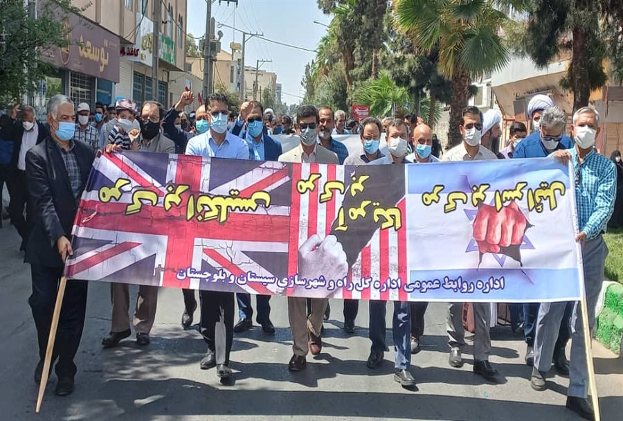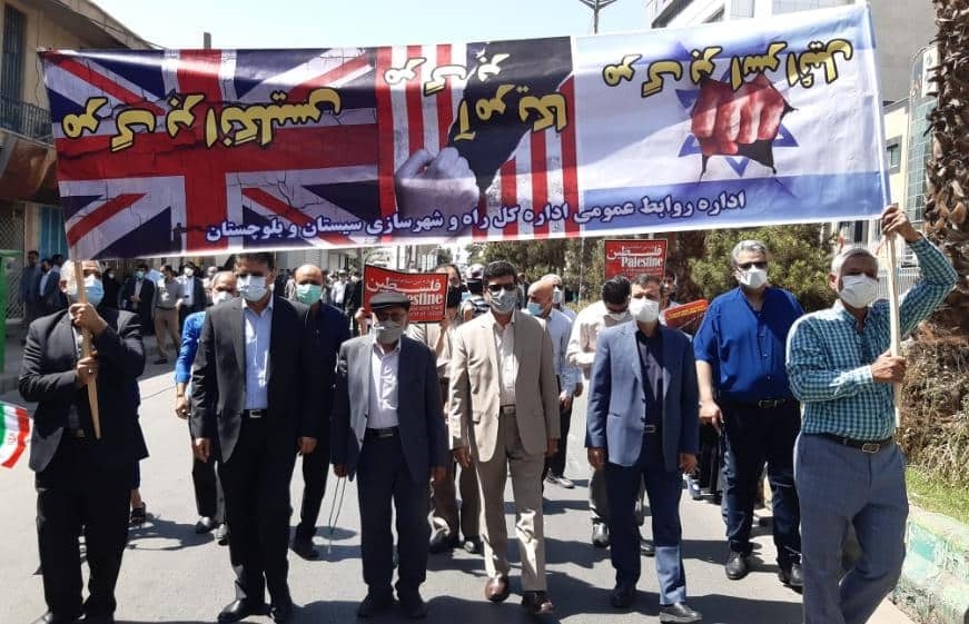 مدیر کل، معاونین و کارکنان اداره كل راه و شهرسازی استان سیستان و بلوچستان همصدا با سایر مسلمانان روزه دار ایران اسلامی در حمایت از مردم مظلوم و ستمدیده فلسطین در راهپیمایی روز قدس شرکت کردند .