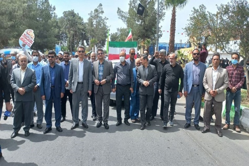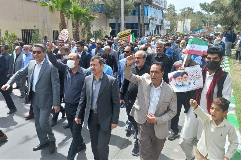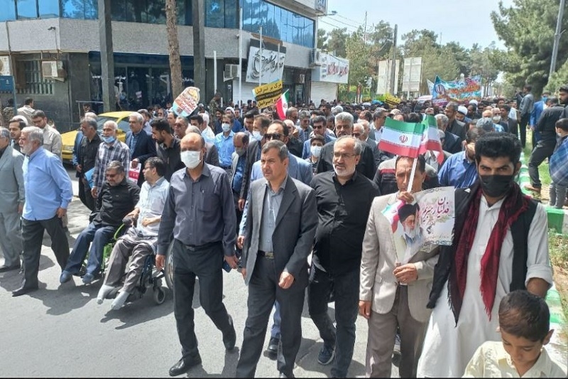 به گزارش اداره ارتباطات و اطلاع رسانی راه و شهرسازی استان سیستان و بلوچستان، مدیران و کارکنان اداره کل راه و شهرسازی این استان با حضور گسترده ودشمنشکن خود در راهپیمایی روز قدس و حمایت از ستمدیدگان و آوارگان فلسطینی، پرچم عدالت و حقطلبی را برافراشته و با همه توان و قدرت، وعده الهی «والارض یرثها عبادی الصالحون» را به نمایش گذاشتند.