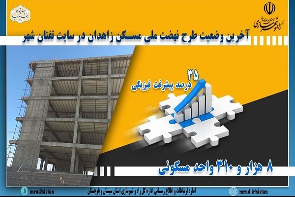 اینفوگرافیک| پیشرفت ۳۵ درصدی  ۸۳۱۰ واحد مسکونی طرح نهضت ملی مسکن زاهدان در سایت تفتان شهر پس از گذشت ۱۰ ماه از زمان آغاز ساخت