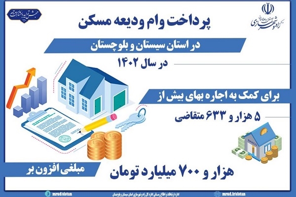 اینفوگرافیک| پرداخت ۱۷۰۰میلیارد تومان وام ودیعه مسکن به بیش از پنج هزار متقاضی سیستان و بلوچستان در ۱۴۰۲