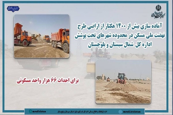 • اینفوگرافیک| آماده سازی بیش از ۱۴۰۰ هکتار از اراضی طرح نهضت ملی مسکن در سیستان و بلوچستان