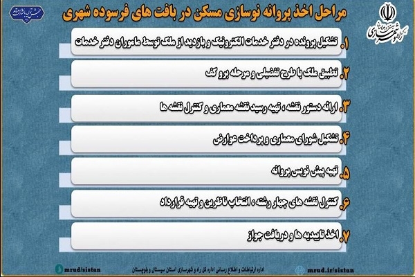 • ایتفوگرافیک| مراحل اخذ پروانه نوسازی مسکن در بافت‌های فرسوده شهری سیستان و بلوچستان