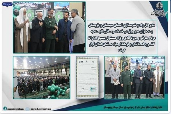 در همایش بسیج ادارات و رزمایش تخصصی گروههای جهادی و طرح شهید رجایی استان سیستان و بلوچستان، عطاء اله اکبری مدیر کل راه و شهرسازی استان سیستان و بلوچستان به عنوان مدیر برتر در خدمات رسانی شایسته به مردم معرفی و مورد تقدیر ویژه مسئول بسیج ادارات کشور، استاندار و فرماندار سپاه سلمان استان قرار گرفت.