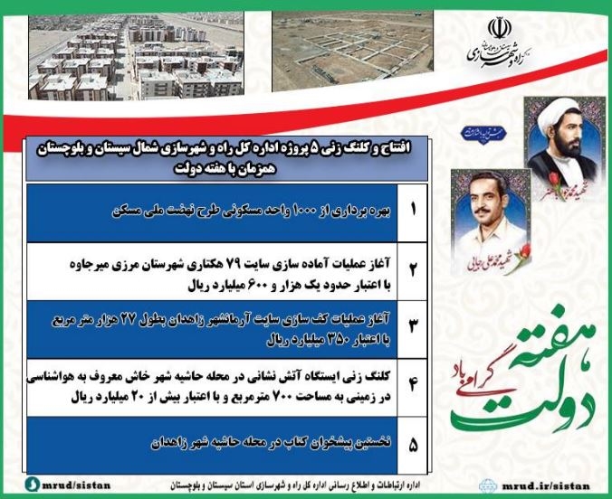 اینفوگرافیک|افتتاح و آغاز عملیات اجرایی ۵ پروژه اداره کل راه و شهرسازی سیستان و بلوچستان همزمان با هفته دولت
