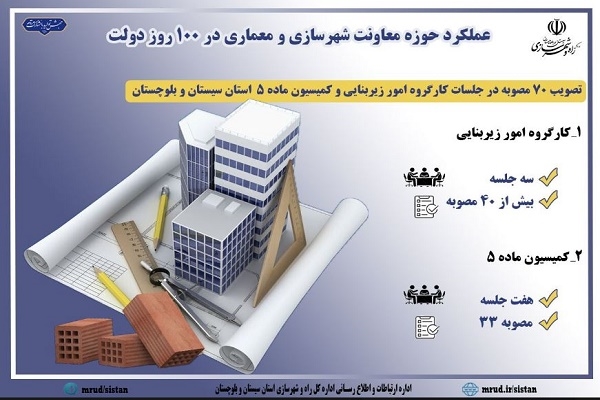 • اینفوگرافیک| ۷۰ مصوبه ماحصل جلسات ۱۰۰ روزه کارگروه امور زیربنایی و کمیسیون ماده ۵ استان سیستان و بلوچستان