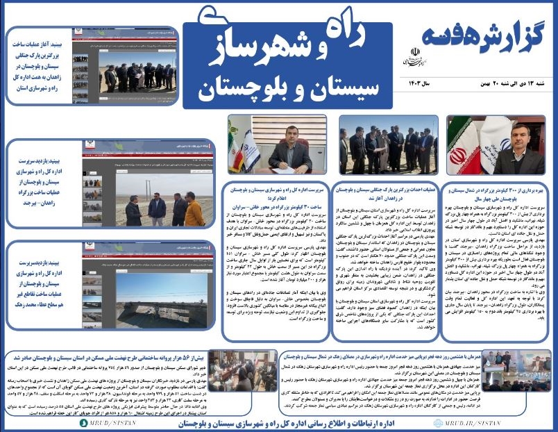 • ببینید|بولتن هفتگی اداره کل راه و شهرسازی استان سیستان و بلوچستان هفته سوم بهمن ماه ۱۴۰۳(۱)
