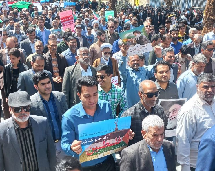 ببینید| حضور مدیر کل و کارکنان راه و شهرسازی سیستان و بلوچستان در راهپیمایی روز قدس
