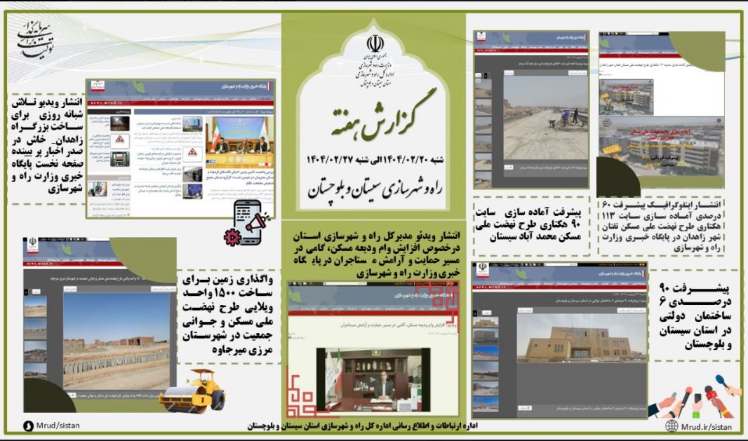 ببینید|بولتن هفتگی اداره کل راه و شهرسازی استان سیستان و بلوچستان هفته چهارم اردیبهشت ماه ۱۴۰۴ (۲)