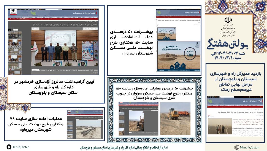 • ببینید|بولتن هفتگی اداره کل راه و شهرسازی استان سیستان و بلوچستان هفته دوم خردادماه ۱۴۰۴ (۱)