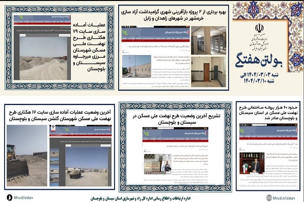 • ببینید|بولتن هفتگی اداره کل راه و شهرسازی استان سیستان و بلوچستان هفته دوم خردادماه ۱۴۰۴ (۲)