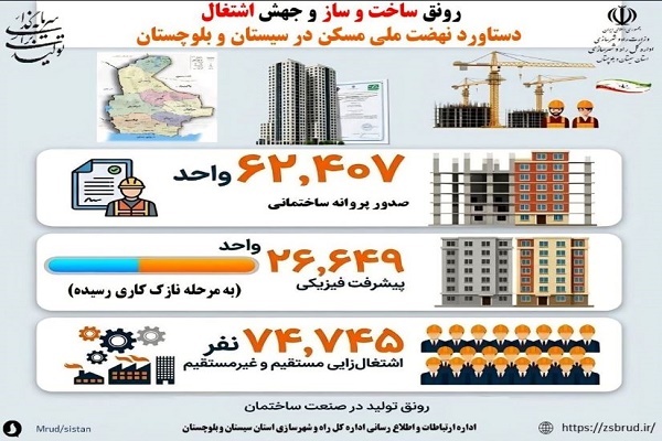 • اینفوگرافیک| رونق ساخت و ساز و جهش اشتغال دستاورد طرح نهضت ملی مسکن در استان سیستان و بلوچستان