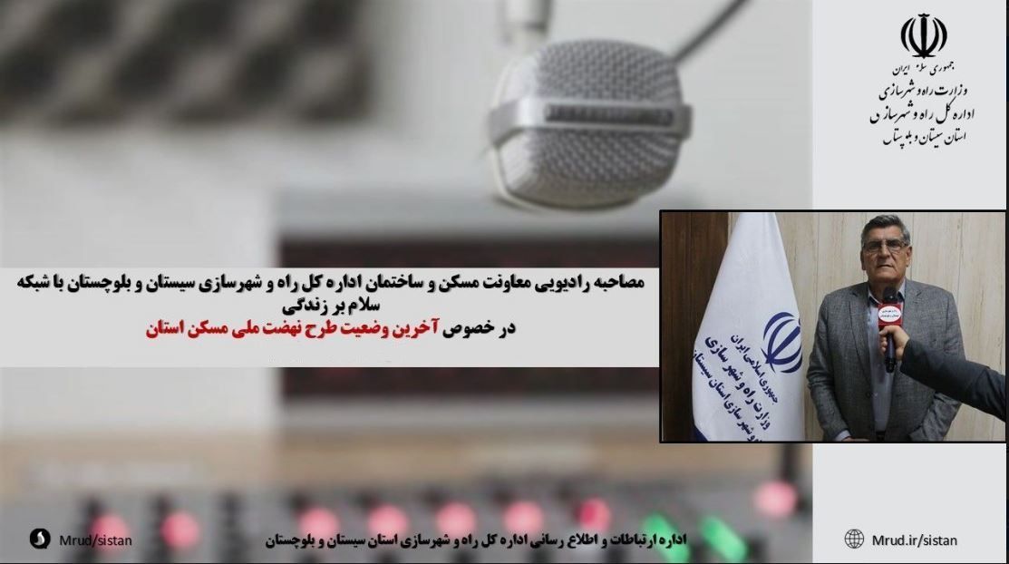 مصاحبه زنده مهندس مهدیار معاون مسکن و ساختمان اداره‌کل راه و شهرسازی سیستان و بلوچستان با برنامه رادیویی "سلام بر زندگی"